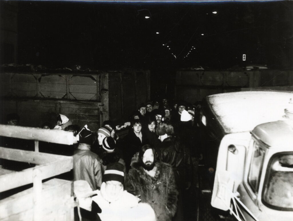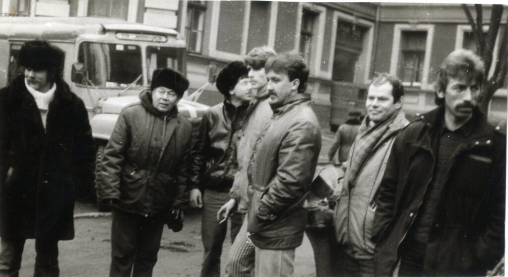 1991.gadajanvāra barikāžu notikumi Rīgā, kapelas “Litenietis” dalībnieki pie televīzijas studijas. FOTO: NO GULBENES NOVADA VĒSTURES UN MĀKSLAS MUZEJA ARHĪVA
