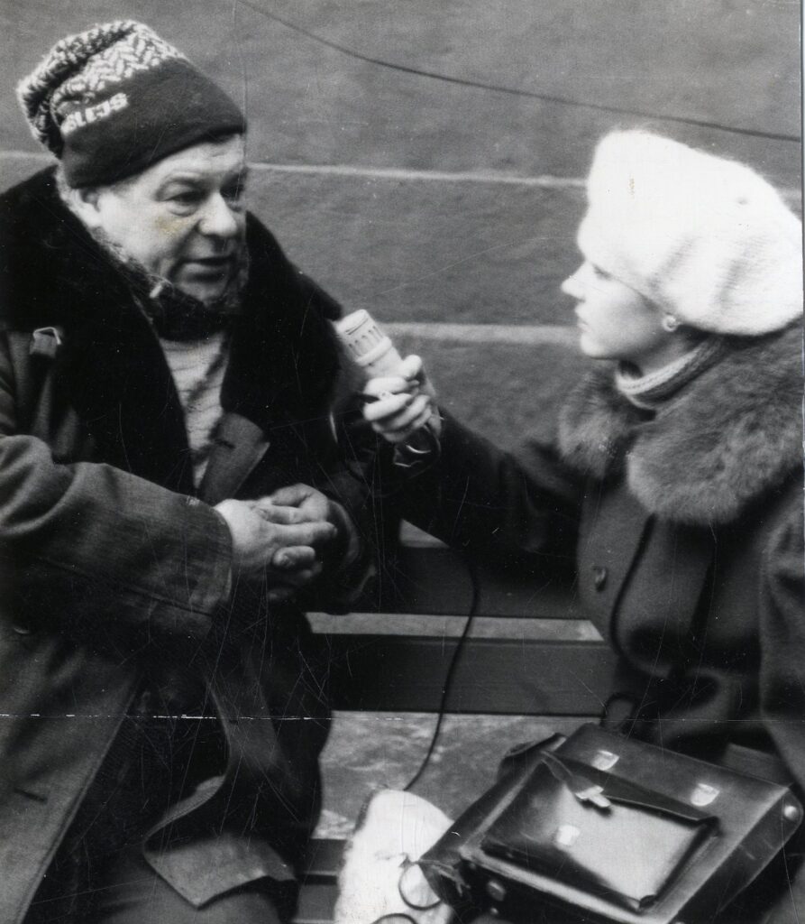 1991.gada janvāra barikāžu notikumi Rīgā, Gulbenes rajona žurnālistes D. Odumiņas intervija ar galgausknieti Jāzepu Platpīru. Foto: no “Dzirksteles” arhīva