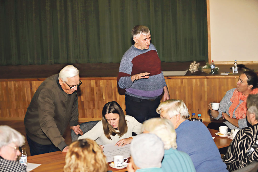 G.Princovs aicināja sapulces dalībniekus sadalīties trīs grupās un nodoties prāta vētrai, izliekot uz papīra, kas sāp, kas ir izdevies pagastā un kādus labos darbus var paveikt pašu spēkiem. Kaut vai, piemēram, uz Ziemassvētkiem paši var izcept speķa pīrādziņus, kurus uzdāvināt pagasta vecajiem ļaudīm.