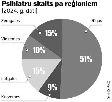 Ministrijas dati rāda, ka starp tādiem speciālistiem kā psihiatrs un bērnu psihiatrs garākās rindas ir tieši pie bērnu psihiatriem Rīgā un Zemgalē. Vidējais gaidīšanas laiks, lai saņemtu ārstu konsultāciju, ir 155 dienas. Patlaban mūsu valstī strādā 55 sertificēti un praktizējoši bērnu psihiatri, 258 psihiatri un 90 psihoterapeiti.