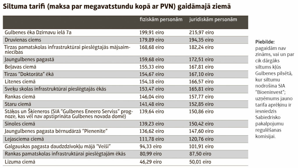 Dārgāks būs siltums Stāķos un Šķieneros, kur šķeldu kā kurināmo izmanto SIA “Gulbenes Energo Serviss”. Bet vēl daudz dārgāks Druvienā, Tirzā, Jaungulbenē, Beļavā, Staros, kur par centrālapkuri gādā pašvaldība un kur lielākoties tiek izmantoti automātiskie kokskaidu granulu katli. Granulu cena ir sadārdzinājusies. Šajos tehniskajos apstākļos pašvaldība neko nav gatava mainīt. Kardināli risinājumi nav atrasti. Visas cerības ir uz valdības atbalstu un sociālajiem pabalstiem. Ko par to saka novada deputāti?