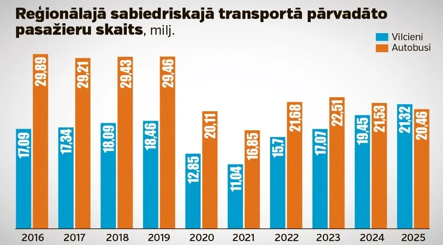 “No pašvaldībām nereti ir emocijas: lūk, padomju laikos bija tik un tik reisu, tāpēc jau cilvēki te vairs nedzīvo, ka autobuss neiet. Tad mēs liekam datus pretim: neredzam, ka cilvēki pārvietotos. Jo lielāks iedzīvotāju blīvums un jo vairāk tie pārvietojas, jo vienkāršāk nodrošināt sabiedrisko transportu un jo mazākas izmaksas,” piebilst J.Lapiņš.