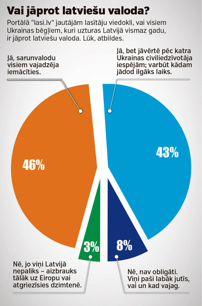 Diezin vai Latvijā ir kāda vieta, kur nav neviena no kara plosītās Ukrainas atbēguša iedzīvotāja? Pārlapojot reģionālos laikrakstus, ir sajūta, ka ukraiņi ir atraduši sev mājvietu pat vistālākajos mūsu valsts reģionos. “Latvijas Avīze” divās publikācijās (“Ukraiņu dzīve jaunajā pasaulē”, 10. oktobris un “Ukrainas ārste: “Ar pacientiem runāju latviski.””, 11. oktobris) pētīja, kā Ukrainas civiliedzīvotāji ir iejutušies Ludzas novadā, kur, pēc Iekšlietu ministrijas sniegtās informācijas, patvērumu ir atraduši vairāk nekā 900 Ukrainas cilvēku. Daļa ir piestājusi uz palikšanu, kamēr beigsies karš, daļa ir nogruntējusies uz ilgāku laiku, jo vairs neesot māju, kurp atgriezties, bet daļa ir devusies labākas dzīves meklējumos uz turīgākām Eiropas valstīm. Taču cauri daudzajiem uzklausītajiem stāstiem skanēja divas būtiskas problēmas: daudziem ukraiņiem Latvijā ir ierobežotas darba iespējas, ja viņi nav ieguvuši augstāko latviešu valodas līmeni. Savukārt jaunajai paaudzei bieži ir grūtības mācīties latviešu skolās, jo viņiem ir problēmas apgūt mūsu valsts valodu, tāpēc viņi turpina mācības attālināti Ukrainas skolās. Izglītības un zinātnes ministrija kopā ar Saeimas deputātiem patlaban meklē risinājumus, kā Ukrainas skolēnus integrēt Latvijas izglītības sistēmā. “Līdz nākamajam mācību gadam šie risinājumi būs, bet vēl nav zināms, tieši kādi,” teic Saeimas Aizsardzības, iekšlietu un korupcijas novēršanas komisijas priekšsēdētājs Raimonds Bergmanis (“Apvienotais saraksts”), kura vadītā komisija kopā ar valdību, kā arī Izglītības, zinātnes un kultūras komisiju iesaistījusies šīs problēmas risināšanā.
