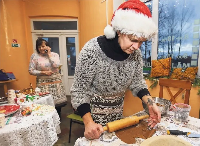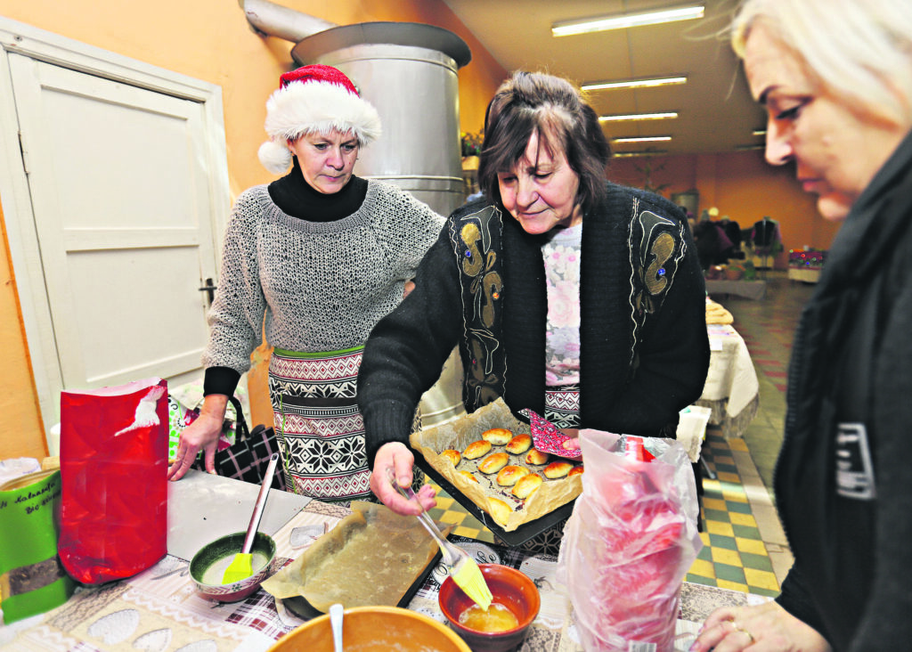 Lai izjustu Ziemassvētku noskaņu un baudītu svētkus ar prieku, bez steigas Rankā šonedēļ vairāku dienu garumā notiek dažādas Ziemassvētku aktivitātes “Ziemassvētku elpa Rankā”. Ir padomāts gan par Ziemassvētku tirdziņu vairāku dienu garumā, gan kopīgu darbošanos, lai visiem, kas atnāk, ir iespēja svētkus sajust un savā sirdī paņemt līdzi uz mājām. Otrdien, kad Rankā ciemojās “Dzirkstele”, rancēnietes Ilona Balode (no kreisās) un Anita Mize strādāja čakli kā rūķi un cepa gardus pīrādziņus un kraukšķīgas piparkūkas. Foto: Gatis Bogdanovs