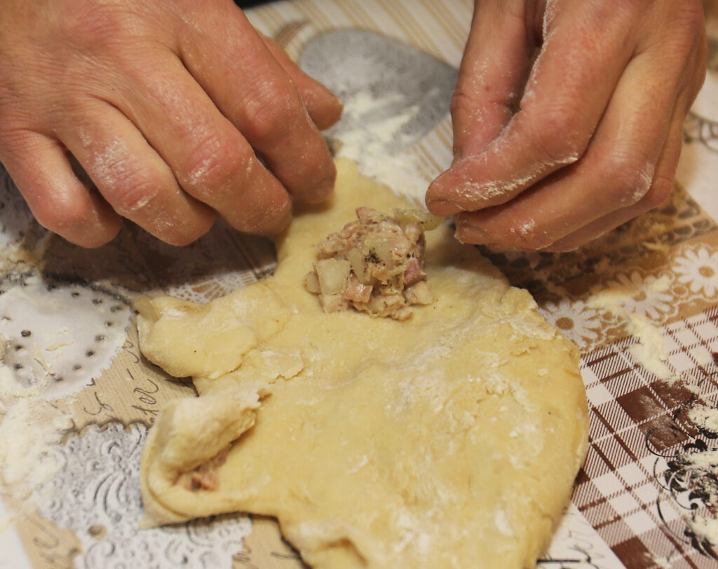 “Recepte nav sarežģīta. Var izmantot pīrāgu mīklu. Pildījumam – kāposts, burkāns un smalki sagriezts sīpols. Visu sacep. Klāt sāls un pipari, un pildījums jau gatavs. Mīklai svarīgi, lai būtu īstais lauku piens. Olu var likt klāt, var nelikt. Vajag diezgan daudz cukura, lai mīkla ir saldena. Nedaudz sāls. Protams, raugs. Un tad tikai mīcīšana, un miltus pēc vajadzības. Arī nedaudz eļļu,” stāsta Inese.