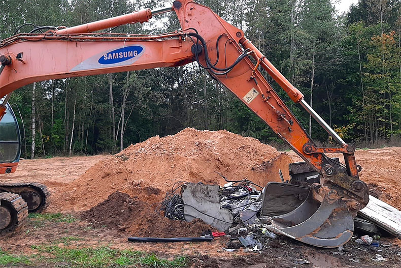 Notikuma vietā atradās ekskavators un kravas automašīna, kā arī bedre, kurā bija redzami dažādi atkritumi, arī sadzīves atkritumi un elektrības vadi.