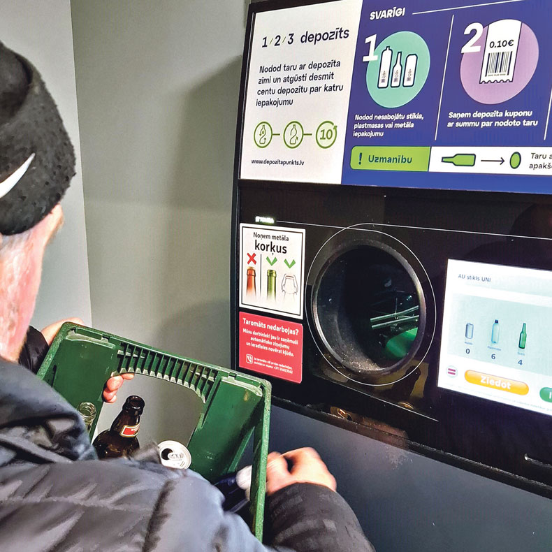 Jau teju trīs gadus, kopš 2022. gada 1. februāra, Latvijā darbojas arī depozīta sistēma, kas ļauj iedzīvotājiem nodot tukšās stikla pudeles un saņemt atpakaļ depozīta maksu. 2024. gada pirmajos deviņos mēnešos tirgū laisti 415 miljoni depozīta iepakojumu, bet nodoti 340 miljoni, tādējādi iepakojumu atgriešanas rādītājs šobrīd ir 82 %. No visiem tirgū laistajiem iepakojumiem 47 % ir PET pudeles, 29 % – skārdenes, bet 15 % – atkārtoti uzpildāmās stikla pudeles. Vēl 9 % ir vienreizlietojamās stikla pudeles.