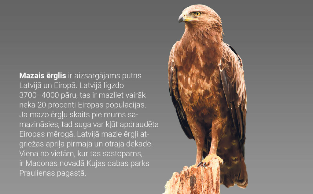 ● Ceturtā daļa pasaules mazā ērgļa populācijas ligzdo Latvijā.