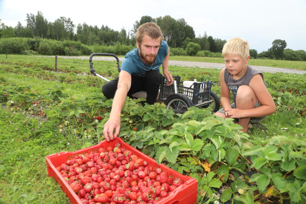 Vietējo zemeņu sezona ir pašā plaukumā, un šis ir spraigs laiks zemeņu audzētājiem, arī Krūmiņu ģimenei Līgo pagastā, kura zemenes audzē aptuveni pushektāra platībā. Līdz šim no lauka nolasīti aptuveni 360 līdz 400 kilogrami zemeņu. Kaspars ar dēlu Kristapu lasa ogas pasūtījumiem, kā arī jau otro gadu piedāvā zemenes uz lauka lasīt pašiem zemeņu cienītājiem.