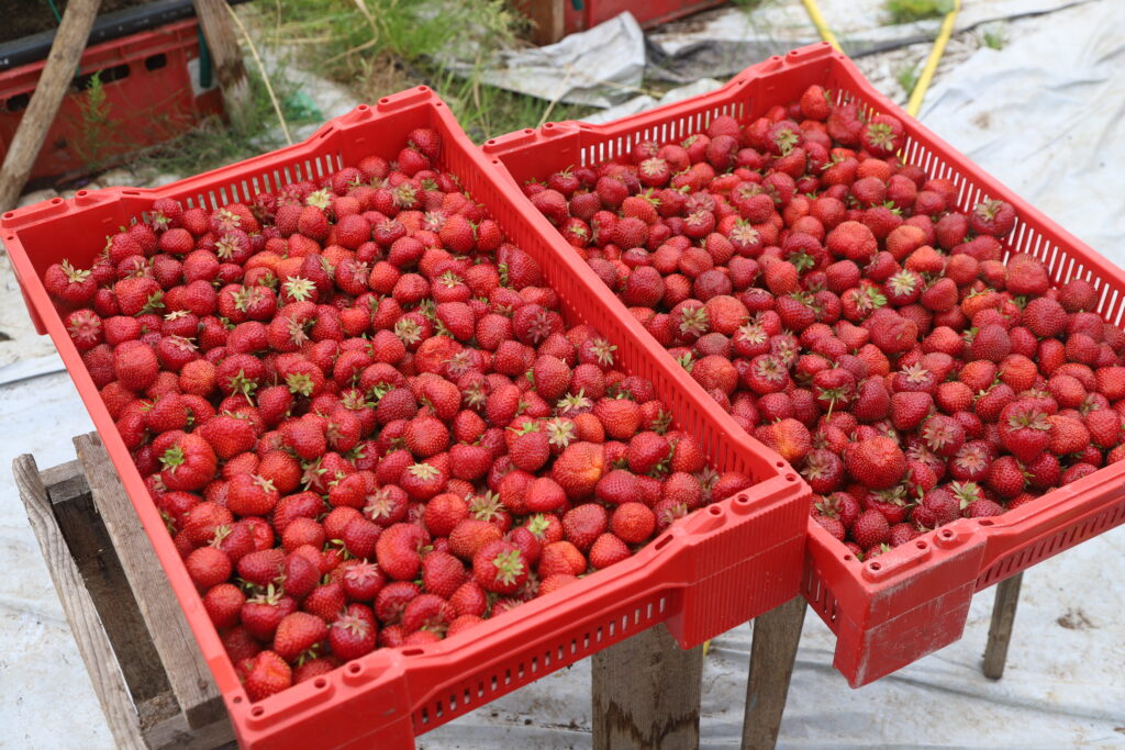 Arī viņa zemeņu laukā raža šogad sāka ienākties uzreiz pēc Jāņiem, un šogad raža ir labāka nekā pagājušajā gadā. “Zemenes būs vēl aptuveni nedēļu. Uz lauka mēs nelaižam lasīt, izņēmums ir vecais lauks, kur paši var lasīt zemenes ievārījumam. Es nelaižu uz lauka, jo cilvēki ir cimperlīgi: ies pa vagu un salasīs sev patīkamās un lielākās ogas, mazās atstās – nu tāda ir cilvēka daba. Rezultātā tāpat tad kādam ir jāiet un tās jānolasa,” skaidro Mārtiņš un piebilst, ka pirktspēja gan šogad ir nedaudz mazāka, bet zudumā ogas viņam neaiziet. Visas tiek nolasītas un realizētas.