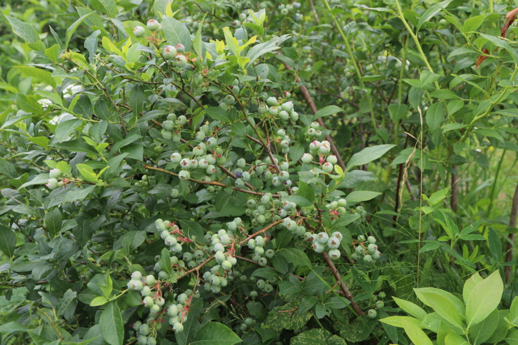 Krūmiņu ģimene pievērsusies arī krūmmelleņu audzēšanai. Ogas gūst arvien lielāku popularitāti un ir arī pieprasītas. Tāpat kā zemenes tās ir vērtīgas ogas. “Izskatās, ka ogas šogad būs lielākas. Raža būs augustā, varbūt arī agrāk. Viss atkarīgs no laika apstākļiem,” saka Kaspars. Aivija piebilst, ka šogad tās ziedēja vēlāk. Viņi prāto, ka, iespējams, arī krūmmellenes tiem, kas vēlēsies, ļaus lasīt pašiem. “Ja nav salnu, tad tās var ilgi lasīt, pat visu septembri, un tad tās ir ļoti garšīgas. Krūmmellenes gatavojas pakāpeniski. Nav tā kā, piemēram, ar upenēm – viss krūms gatavs un jālasa nost,” stāsta Aivija.