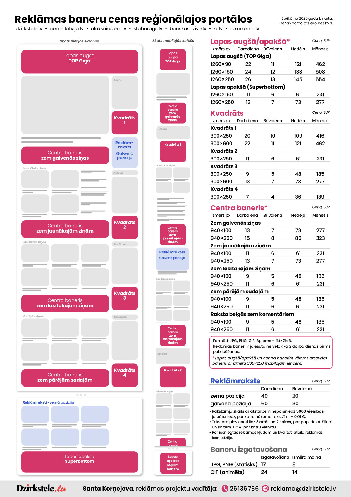 Lai vienotos par reklāmas ievietošanu laikrakstā vai portālā, sazinieties ar: