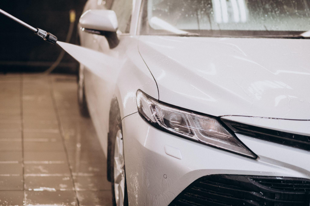 - roku mazgāšana ar augstspiediena pistoli – tu kontrolē kustību un spiedienu, lai ar šampūnu mazgātu virsbūvi un detaļas. noskalotu;