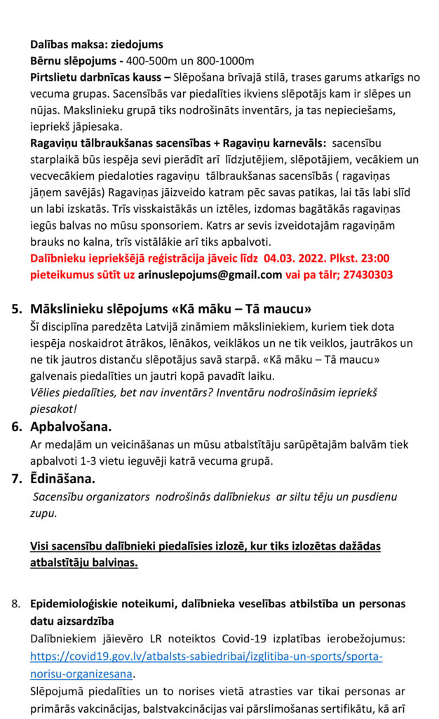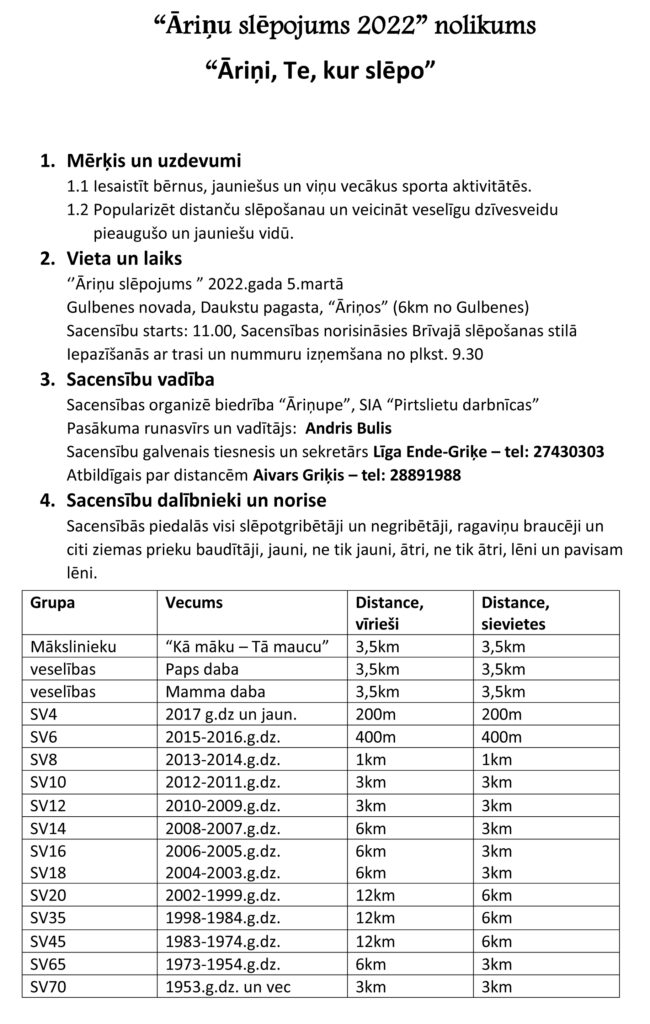 “Āriņu slēpojums” kļūst par tradīciju, kas pulcē lielu skaitu interesentu, un jau pavisam drīz, 5.martā, notiks kārtējais “Āriņu slēpojums” Daukstu pagasta “Āriņos”. Par to “Dzirksteli” informē sacensību organizatore Līga Ende-Griķe.