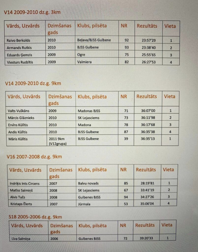 Jebkuras pretenzijas organizatori uzklausīja sacensību dienā. Visi rezultāti ir pēc tiesnešu protokoliem un bērnu grupiņa, kura sajauca trases, tika sadalīta un izveidota pavisam jauna grupa, kura tika apbalvota. Lūdzu rakstiet mums, ja Jums šķiet, ka kaut kas nav bijis pareizi. Esam atvērti visam, cienīsim viens otru….. Ir tikai viena grupa ar kuras dalībniekiem organizatori sazināsies personīgi, jo ātrumā tika nolasīti nepareizi rezultāti no protokola…. Esam saprotoši, jo nekļūdās tikai tas, kas neko nedara :)))