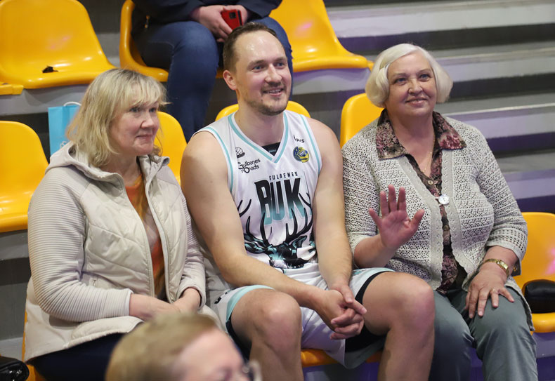 Pēc traumas uz laukuma atgriezies komandas kapteinis Ingars Aizpurs, kura uzticīgās atbalstītājas ir mamma Daiga (no kreisās) un sievas vecmamma Vera Šakurova. Foto: Gatis Bogdanovs