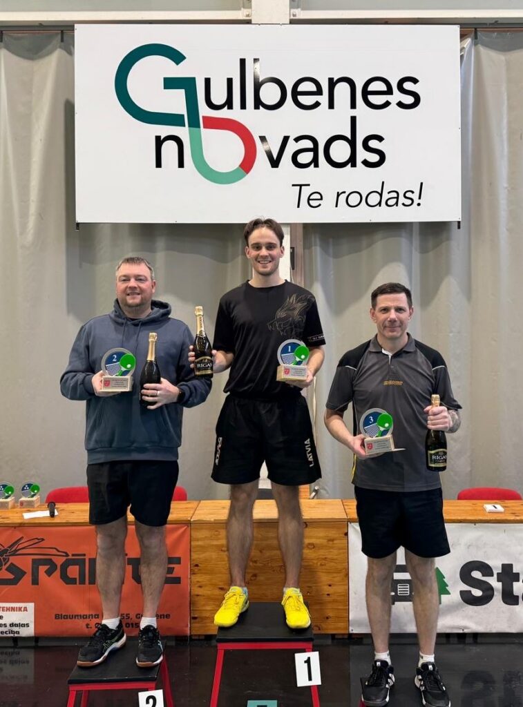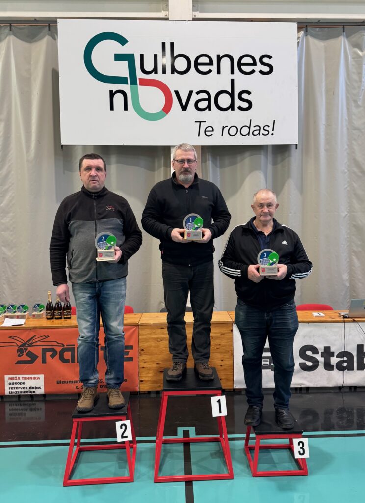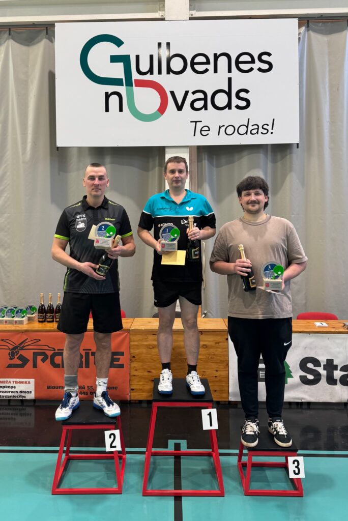 LABĀKIEGulbenes novada galda tenisisti šajās sacensībās: 1. vieta – Konstantīns Kauliņš (centrā); 2. vieta – Andris Neilands (no kreisās); 3. vieta – Nauris Sirmacis. FOTO: “GALDA TENISA KLUBS GULBENE”