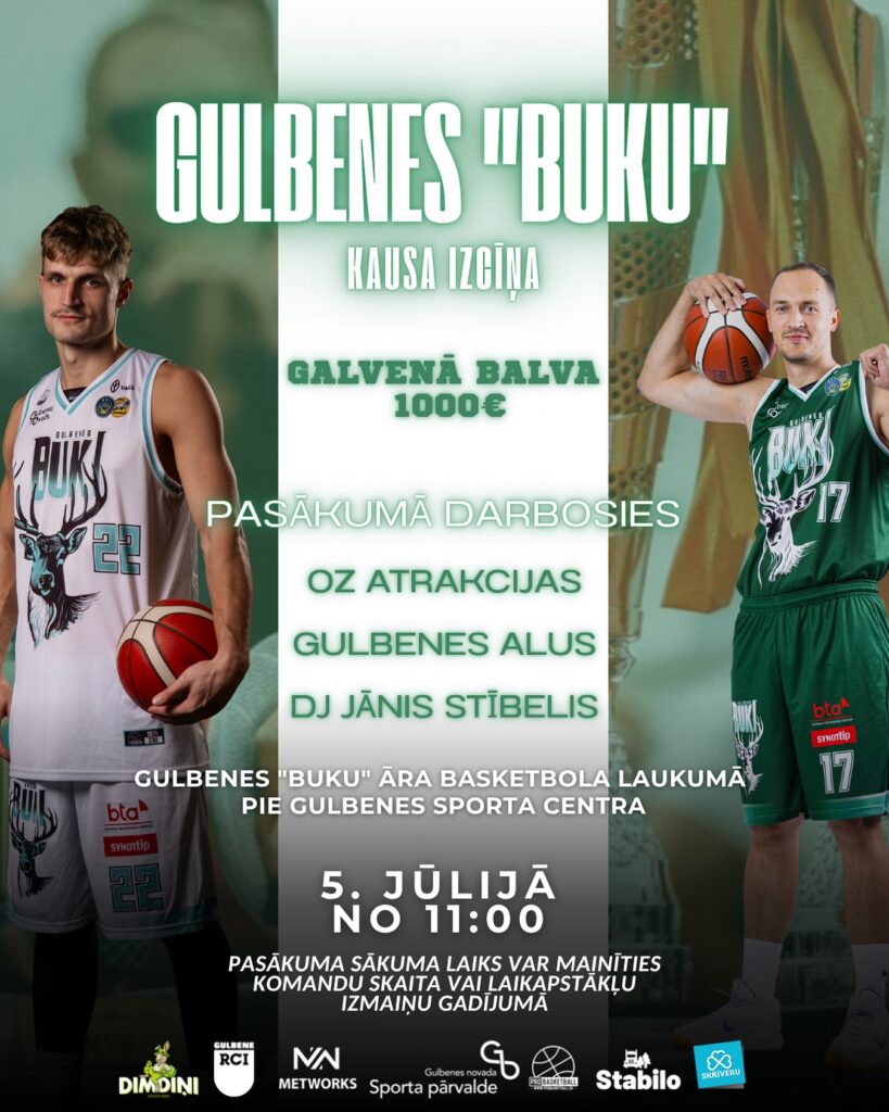 Sestdien, 5. jūlijā, ikviens ir aicināts uz “Gulbenes Buku” kausa izcīņu, kas notiks āra basketbola laukumā pie Gulbenes sporta centra. Sākums pulksten 11.00.