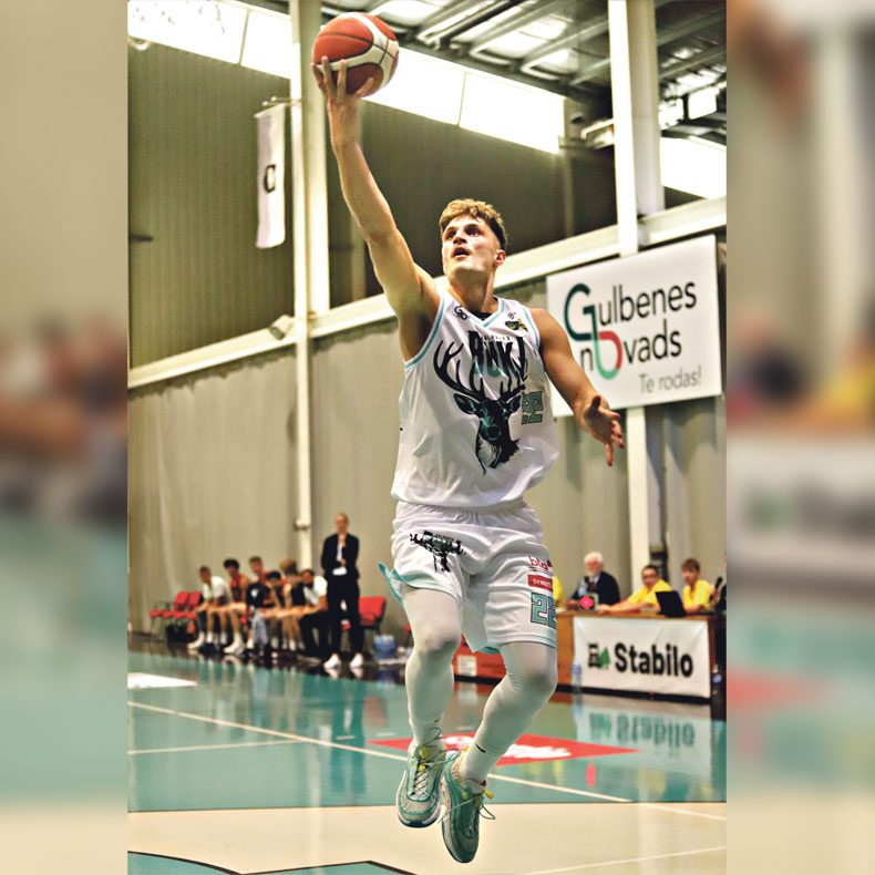 “Gulbenes Buku” spēlētājs Jānis Engers – viens no rezultatīvākajiem spēlē ar “RSU/VEF Rīga”. Foto: no “Dzirksteles” arhīva