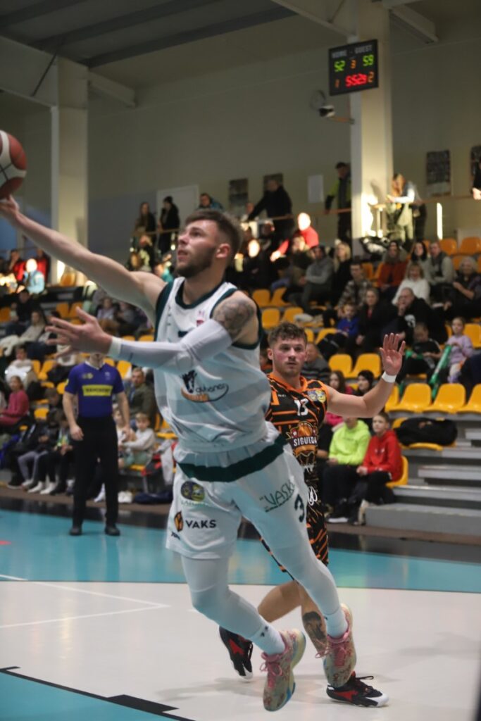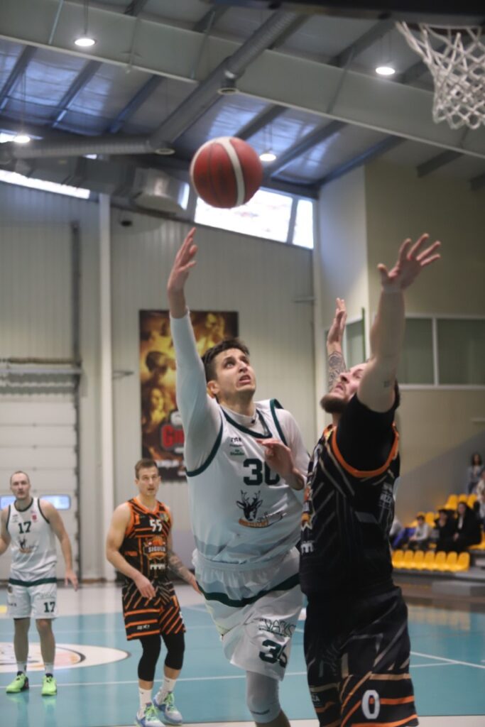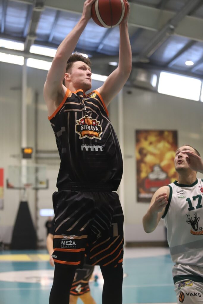 Rihards Bērziņš (30.numurs) spēlē pret siguldiešiem izrādīja pamatīgu cīņas sparu. Foto: Gatis Bogdanovs.