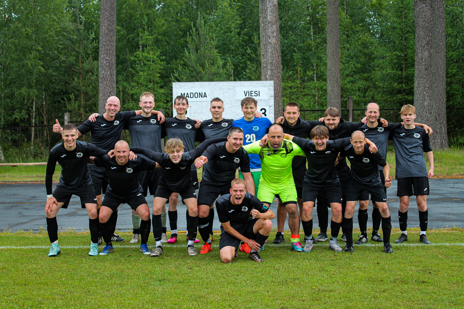 Neilgi pirms iešanas atpūtā spēles rezultātu atklāja Madonas komanda. Pēc precīza centrējuma soda laukumā visaugstāk no visiem izlēca madonietis, kas prasmīgi ar galvu bumbu pārvirzīja vārtos. Pirmais puslaiks tā arī noslēdzās – 0:1.