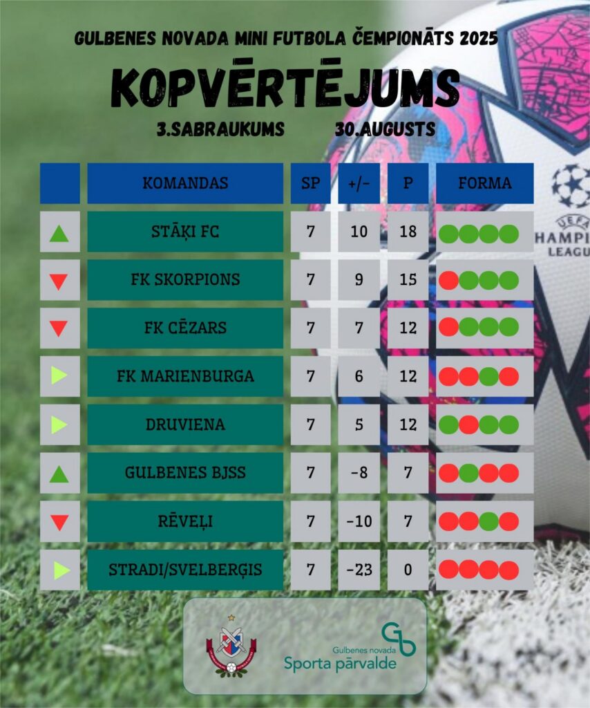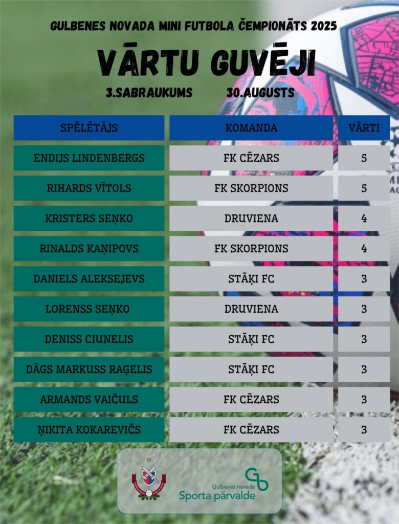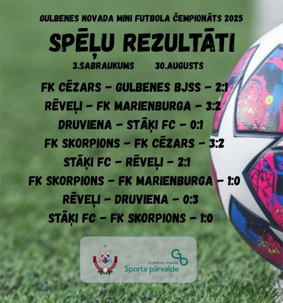 Augusta izskaņā tika aizvadītas noslēdzošās ️spēles, lai noskaidrotu četras komandas, kas piedalīsies Gulbenes novada minifutbola čempionātā. Finālā iekļuva: “Stāķi FC”, “FK Skorpions”, “FK Cēzars”, “FK Marienburga”.