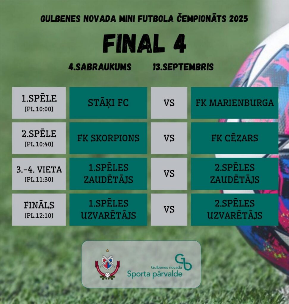 Fināls notiks 13. septembrī Gulbenes sporta centra stadionā. Pirmās spēles jau pulksten 10.00.