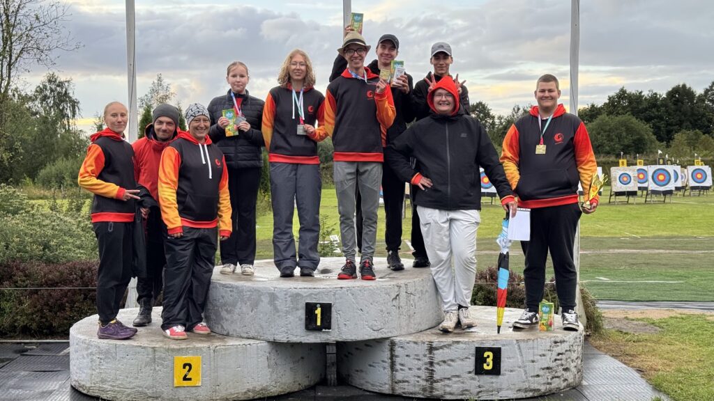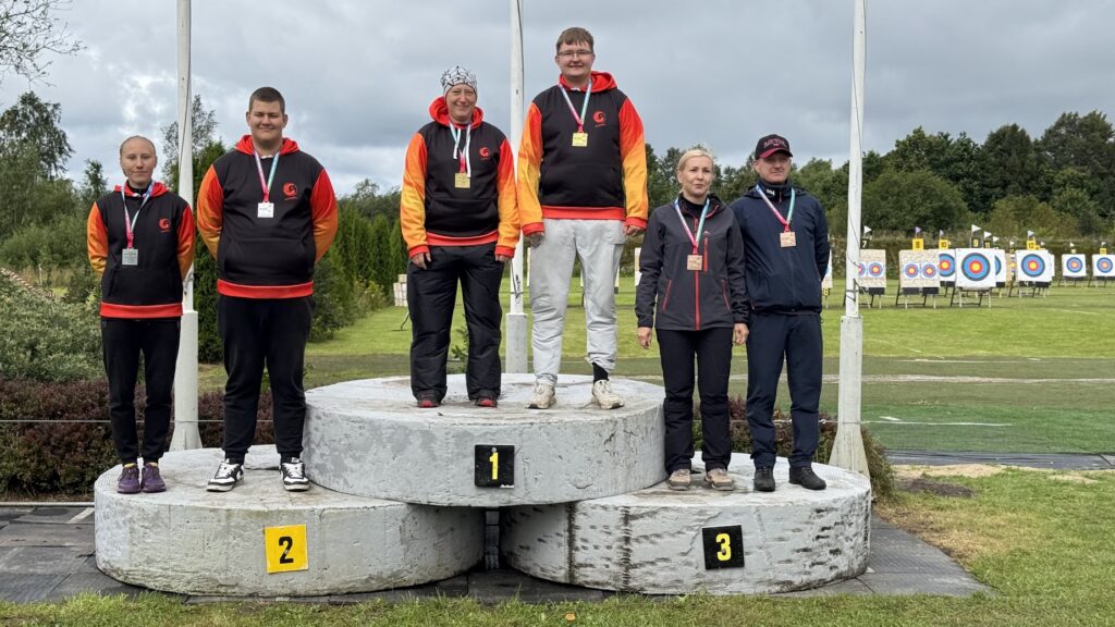 “Mix” komandu uzvarētāji. Foto: Latvijas Loka šaušanas federācija