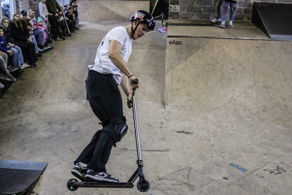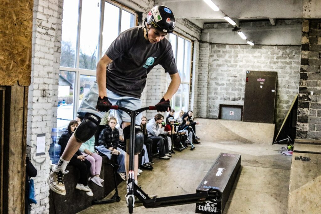 Gulbenē pagājušās nedēļas nogalē notika “Indoor master” iekštelpu skeitparka sacensības, kuras pulcēja 15 dalībniekus no Gulbenes, Cesvaines un Rīgas. Jaunieši brauca noteiktu trasi ar dažādiem elementiem, rādot elpu aizraujošus trikus ar skrejriteņiem.