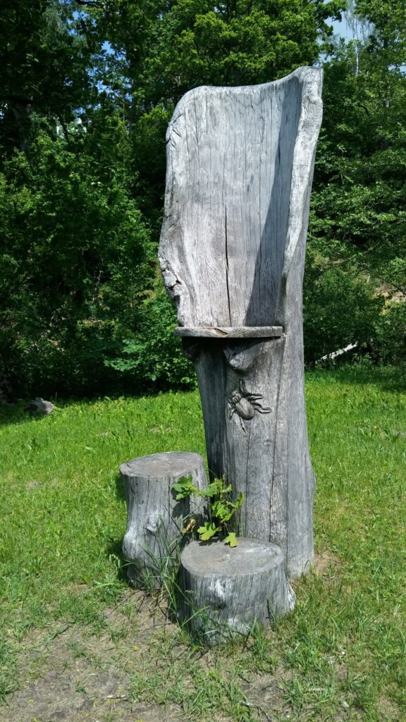 Apkārt ēkai izlikti akmeņi ar mārītēm un arī tūrisma centrā redzamas mārītes. “Sākumā tās bija vienkārši dekoratīvs elements, bet pamazām mārītes sanāca telpās. Tad tās pārgāja uz kartes, kur ikviens, kurš atbrauc, pieliek mārīti. Pirms dažiem gadiem sāka braukt ārzemju tūristi. Viņiem arī tas iepatikās, un bijām spiesti meklēt pasaules politisko karti,” saka gide. Kādā stūrīti ir kāda vietējā iedzīvotāja pieaugušo bērnu mārīšu kolekcija.