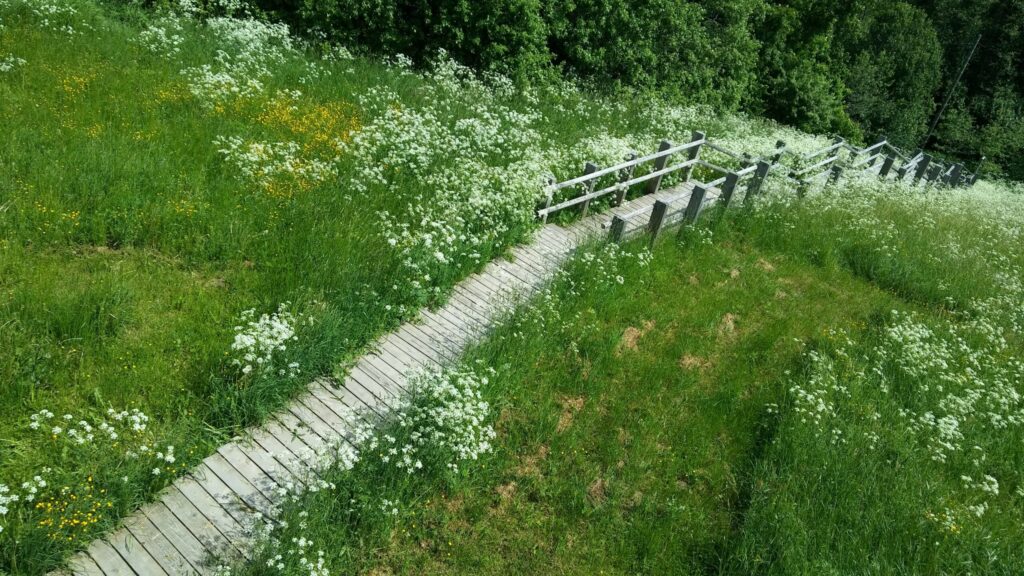 Pa veco muižas ceļu gar dzirnavu dīķa dambi, pēc tam pāri skaistām, ziedošām pļavām gides pavadībā dodamies uz Induļa pilskalnu. Netālu atrodas arī Pavārkalns jeb Taurētājkalns – lielākais galda kalns Kurzemē. Par kalna nosaukumu ir īpašs stāsts. “Muižkungs savā muižā sastrādājis nedarbus ar kalpa meitu un, lai nomazgātu savu grēku, licis muižas pavāram meitu apprecēt. Par to viņam uzdāvājis kalnā māju, ko visi iesaukuši par pavārmāju,” stāsta gide.