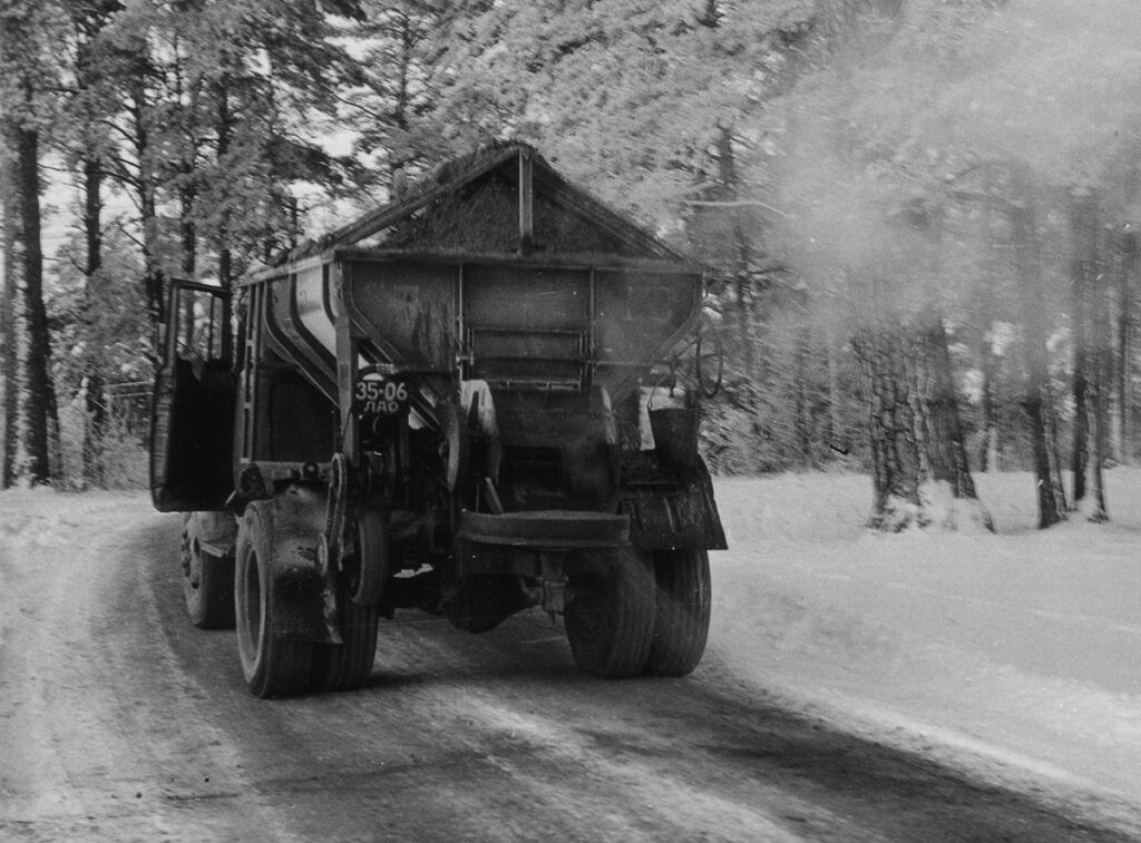 Sākot no 20. gs. 50. gadiem, galvenos ceļus sāka kaisīt ar pretslīdes materiāliem. Sākumā tā bija smilts, ko ar lāpstām izkaisīja no zirga pajūga vai kravas auto. Stāvākās nogāzēs ceļu malās bija izvietotas ar skujām apsegtās smilšu kaudzes, kuras varēja izmantot gan ceļu remontstrādnieki, gan autobraucēji.