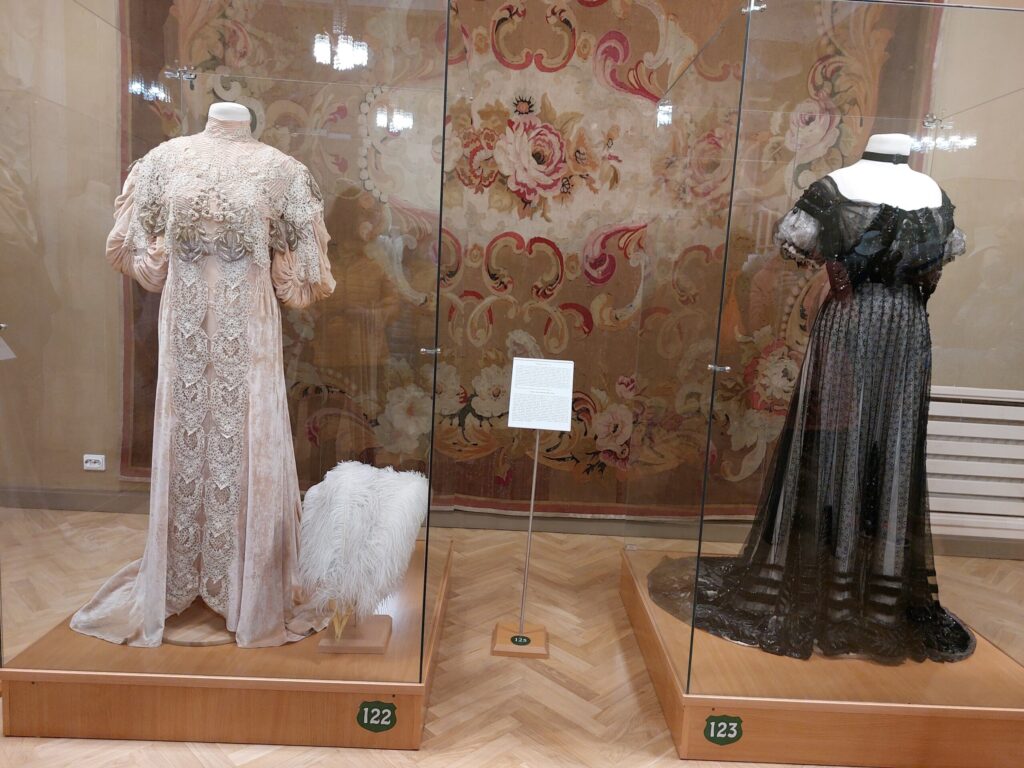 Gide stāsta, ka 1940.gadā pili nacionalizēja, grāfi aizbrauca uz Poliju. Pilī iekārtoja muzeju, tad ēkā ievācās krievu karavīri, pēc tam vācu karavīri. Vairākus gadus pils piederēja kolhozam, kādā gadā tur glabāti graudi, kas, protams, sabojāja parketu. Tad pilī iekārtoja kultūras namu, bibliotēku un dzimtsarakstu nodaļu. Par laimi, nekas netika daudz pārbūvēts vai izmainīts. Kad iestādēm tika uzceltas jaunas ēkas, visu pilī atdeva muzejam, kurš bez pārtraukuma tur darbojas kopš 1952.gada.