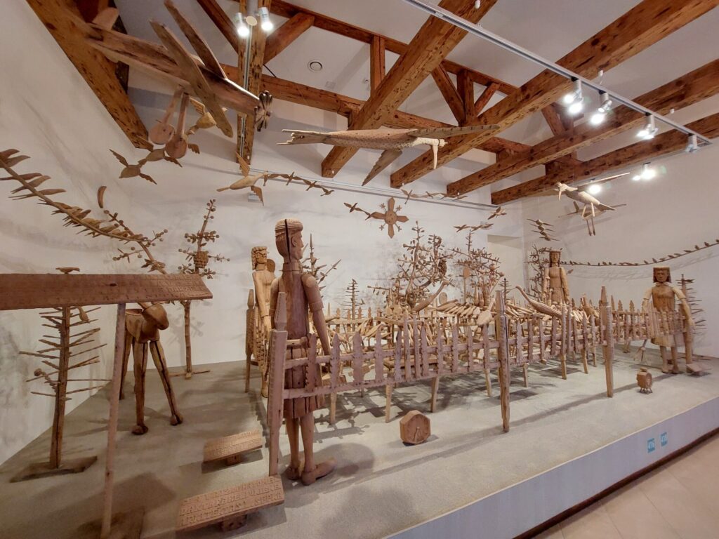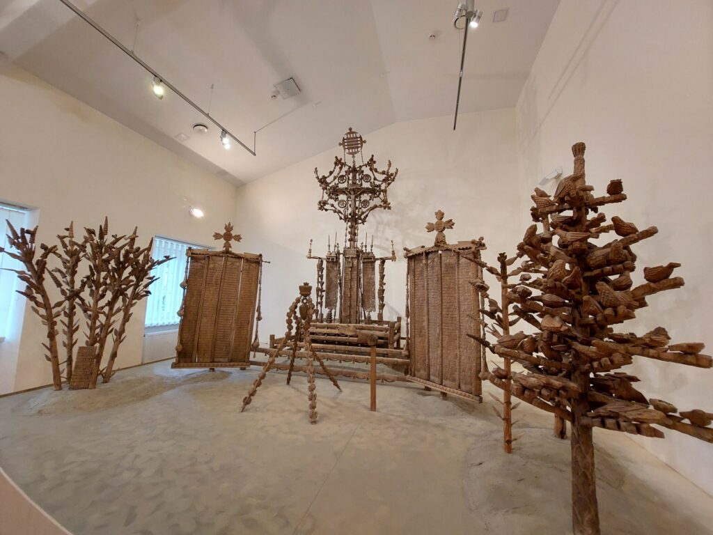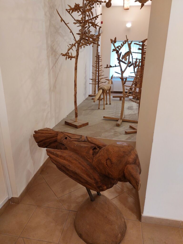 Muižā var izbaudīt arī vietējā Rokišķu siera degustāciju, ko mēs arī izdarījām. Un vēl – vienā no muižas ēkām ir iekārtota lietuviešu koktēlnieka Liongina Šepkas (1907-1985) savdabīgo kokgriezumu izstāde. Viņš ar kokgriezumiem sācis nodarboties tikai 42 gadu vecumā, kad pēc brāļa nāves veidojis viņam pieminekli. Viņa darbiem ir primitīvas formas, bet tie ir ļoti pārsteidzoši.