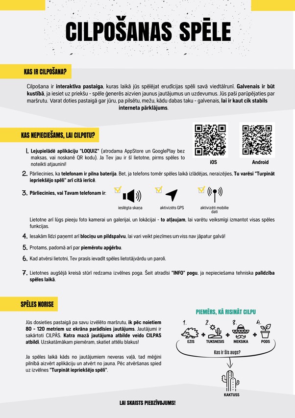 Svarīgi, ka spēlē var piedalīties jebkurš Vidzemes iedzīvotājs vai viesis un tā darbojas visā Vidzemē. Dodoties pastaigā pa sevis izvēlētu maršrutu, ik pēc noietiem 80 līdz 120 metriem uz ekrāna parādīsies jautājums. Jautājumi sakārtoti CILPĀS. Katra mazā jautājuma atbilde veido CILPAS atbildi. Uzskatāmākam piemēram blakus atrodams arī attēls.