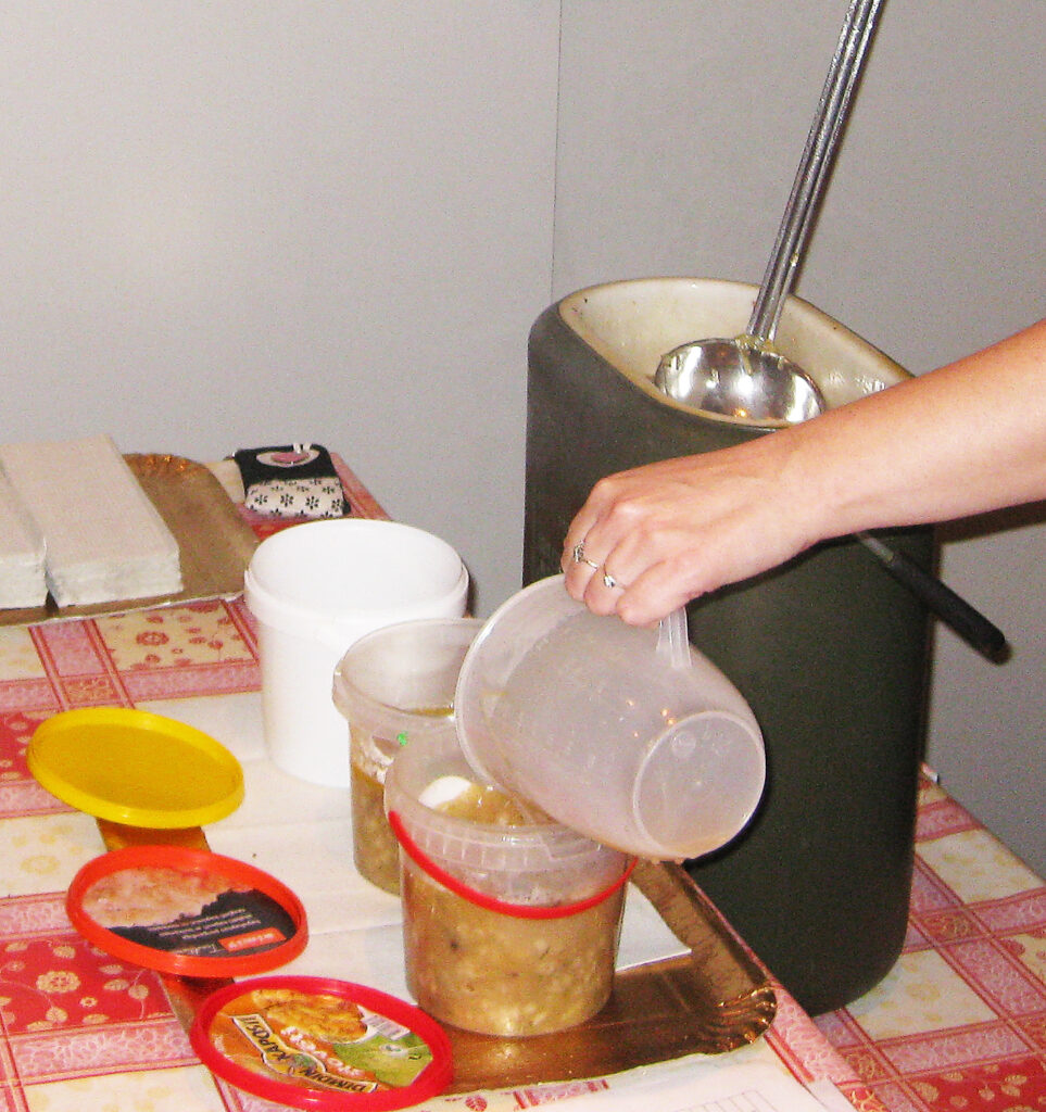 I.Vanuška stāsta – zupu vārot ne jau vienā katlā. Bet vairākos. Kopumā – apmēram 20 litrus. Un tie visi tiek izdalīti. Kā jau daudzkārt vēstīts, pie I.Vanuškas pēc zupas var taujāt katrs. Viņa nevienam neprasa uzrādīt dokumentus, kas apliecina trūcīgās personas statusu.