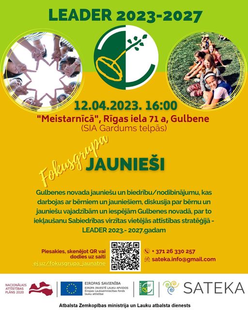 Dienaskārtībā ir informācija par “Leader” 2023.- 2027.” piedāvātajām iespējām biedrības “Sateka darbības teritorijā; diskusijas par jauniešu vajadzībām, to prioritātēm, aktivitāšu noteikšana, par iesaistīšanos dažādās organizācijās, norisēs un aktivitātēs.