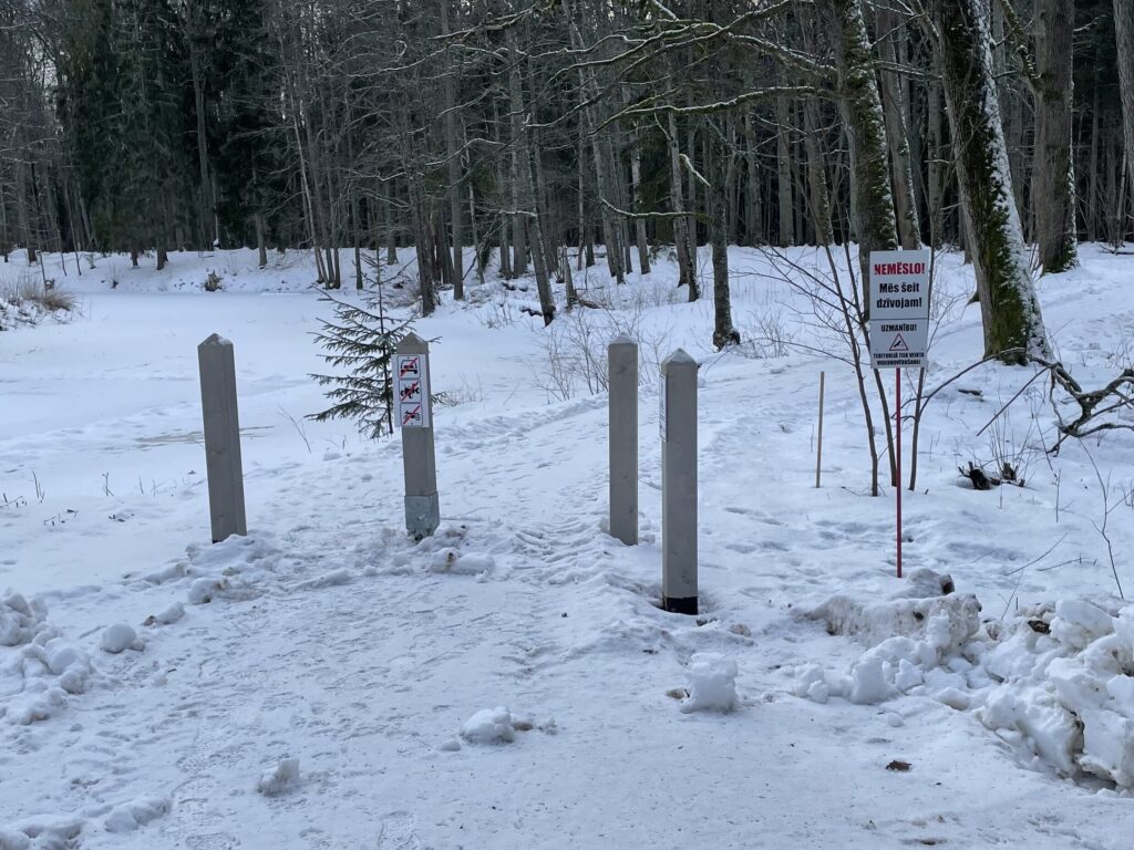 Atklājās, ka centrālais norobežojošais stabiņš uz celiņa ir noceļams un noliekams malā, lai netraucē iebraukt transportam. Stabiņam ir stiprinājums, bet “Dzirkstele” atrada šo stiprinājuma detaļu noņemtu un iesalušu zemē. Iesalušo detaļu izkasījām ārā un stabiņu nostiprinājām tā, kā tam jābūt.