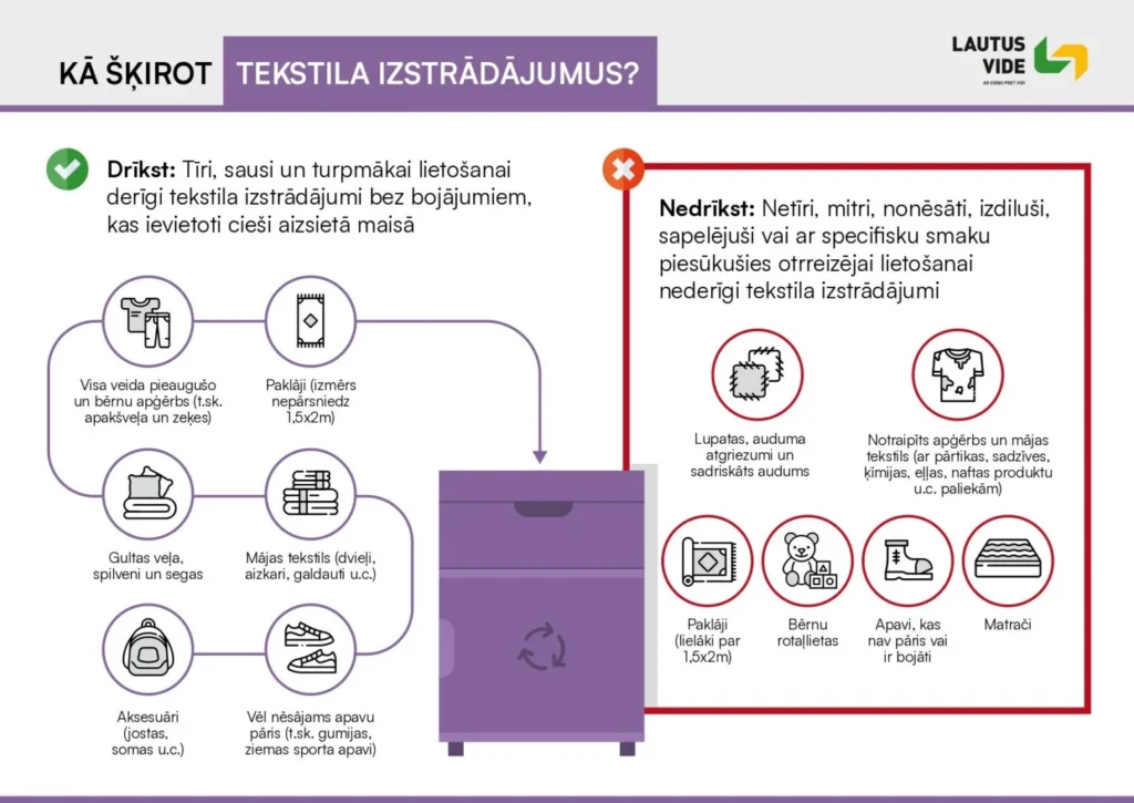 “Lautus vide” atgādina, ka Eko laukumā Gulbenē privātpersonām, kurām ir noslēgts sadzīves atkritumu apsaimniekošanas līgums, ir iespēja bez maksas vienu reizi gadā nodot līdz 4 vieglo automobiļu riepām, kā arī tekstilizstrādājumu konteinerā var nodot nederīgu, bet tīru apģērbu, apavus un mājas tekstilu, piemēram, segu, dvieļus un gultas veļu. Tā ir lieliska iespēja atbrīvoties no nevajadzīgiem, bet vēl izmantojamiem tekstilizstrādājumiem, vienlaikus veicinot ilgtspējīgu atkritumu šķirošanu.