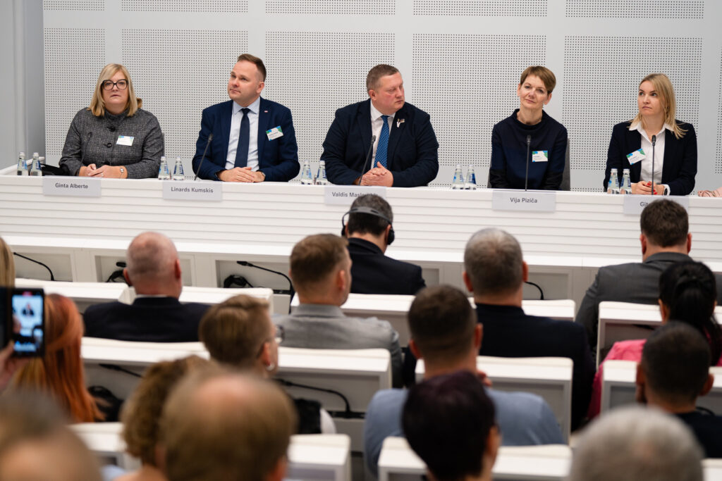 Foruma ekspertu paneļdiskusijā piedalījās Rēzeknes novada Viļānu iedzīvotāju padomes priekšsēdētāja Vija Piziča un Bauskas novada Valles pagasta iedzīvotāju padomes priekšsēdētāja vietniece Gita Zemīte, Saeimas deputāts Valdis Maslovskis, Siguldas novada domes priekšsēdētājs Linards Kumskis, kā arī laikraksta “Dzirkstele” galvenā redaktore Ginta Alberte (no kreisās). Foto: Ieva Ābele/Saeima
