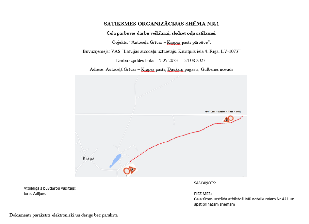 Autoceļa Grīvas-Krapas pasts pārbūves projekta izstrādātājs /autoruzraudzība – SIA “JLD”; būvuzņēmējs – VAS “Latvijas autoceļu uzturētājs”; būvuzraudzība – SIA “Verus Specto”.