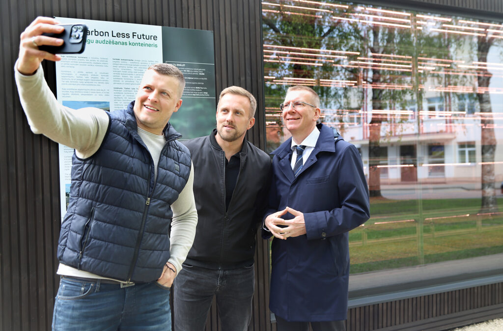 Valsts prezidents vizītes laikā tikās ar vietējā uzņēmuma “Carbon Less Future” pārstāvjiem Aivi Garo un Aigaru Jačuku, kuri turpat netālu no pašvaldības ēkas centrālajā skvērā uzstādījuši stādu audzēšanas konteineru, kurā audzē priežu stādiņus. Tikšanās mirklis, lai arī īss, izvērtās sirsnīgs un pozitīvs. “Prieks, ka esat atbraucis, un prieks, ka ejat garām mūsu kokaudzētavai!” uzsvēra A.Garais.