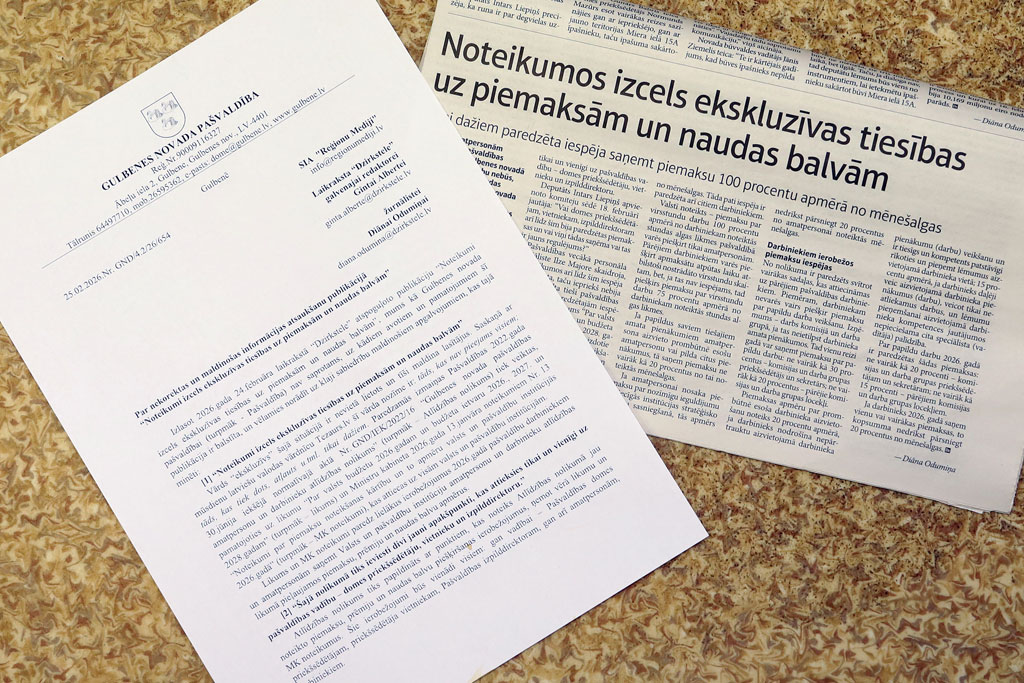 “Dzirkstele” saņēma Gulbenes novada pašvaldības izpilddirektores Antras Sprudzānes vēstuli, kurā pausta pašvaldības nostāja saistībā ar 24. februāra “Dzirksteles” rakstu “Noteikumos izcels ekskluzīvas tiesības uz piemaksām un naudas balvām” (rakstu lasiet šeit).