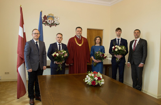 Strupišs pēc zvēresta pieņemšanas notārus sveica ar pievienošanos zvērinātu notāru saimei, kas ir tiesu varai piederīgas personas.