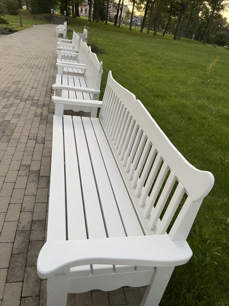 Gulbenieši un pilsētas viesi ir pamanījuši jaunas mēbeles gan Pils parka pie Sarkanās pils, gan pie muzeja klēts. Tie ir balti koka soliņi un baltas šūpoles. Tādējādi vēsturiskā Vecgulbenes muižas teritorija pamazām sāk līdzināties aristokrātiskam dārzam pastaigām un iedvesmai.