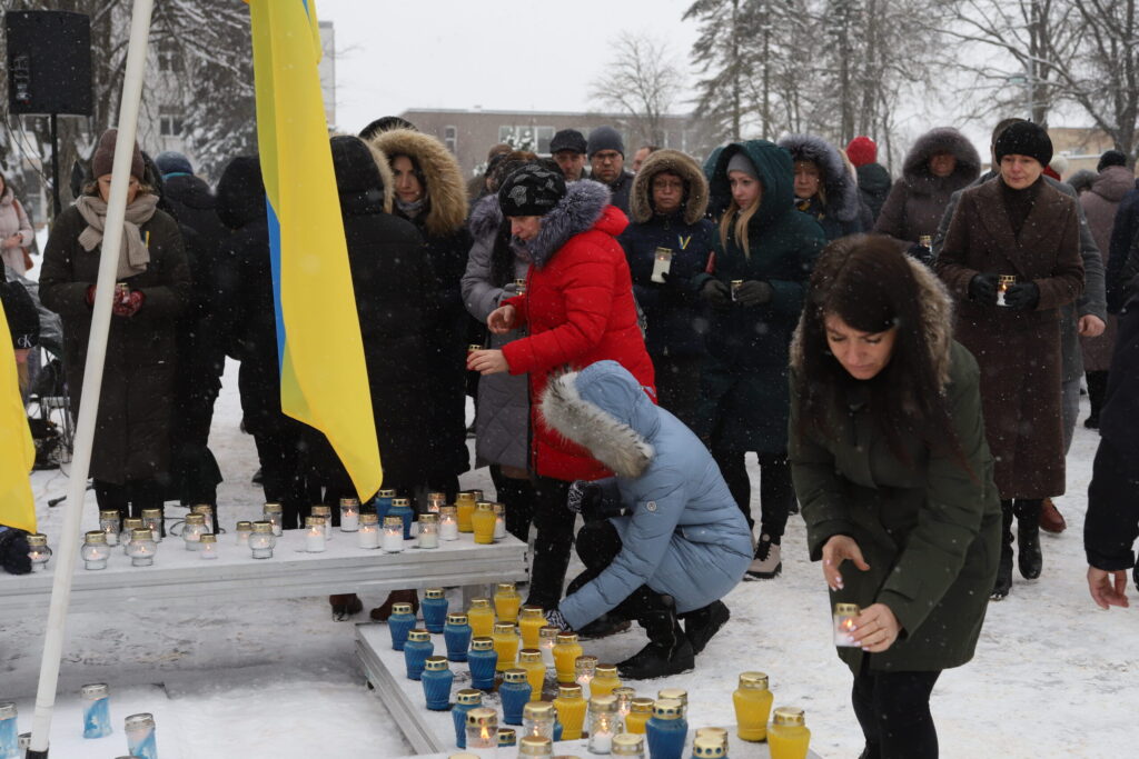 Gulbenē noliek sveces Ukrainas kara gadadienā