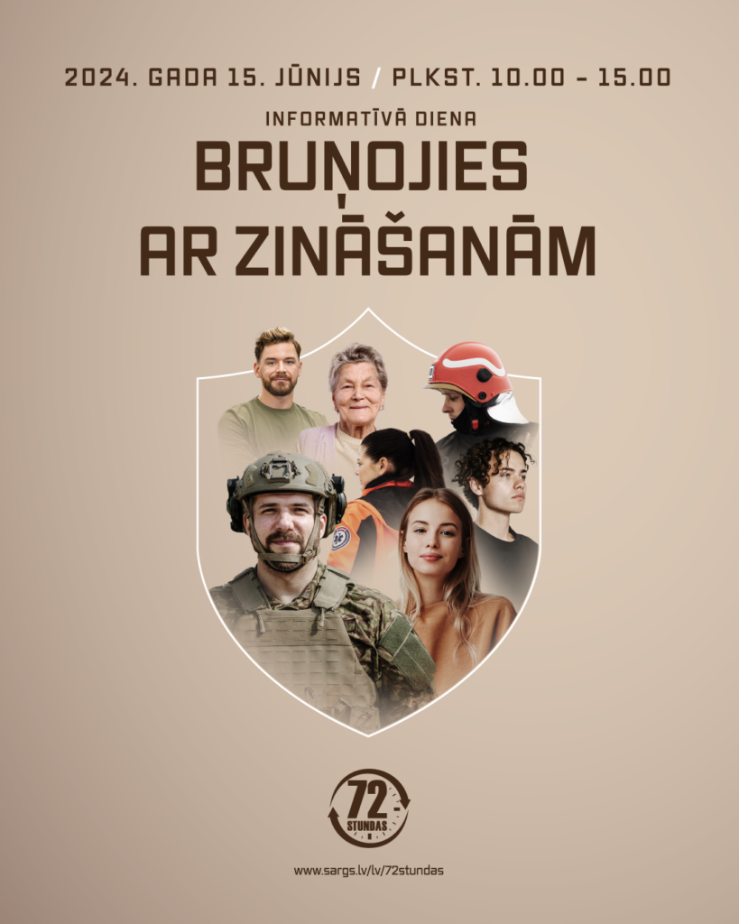 Dodoties uz pasākumu, iedzīvotāji aicināti arī iepazīties ar materiāliem ziņu portāla “Sargs.lv” sadaļā “72 stundas”, kur līdzās bukleta “Kā rīkoties krīzes gadījumā” jaunākajai redakcijai pieejama arī rokasgrāmata “Kā rīkoties kara gadījumā”, kas tapusi, mācoties no Ukrainas pieredzes cīņā pret Krievijas okupācijas armiju: www.sargs.lv/lv/72stundas-