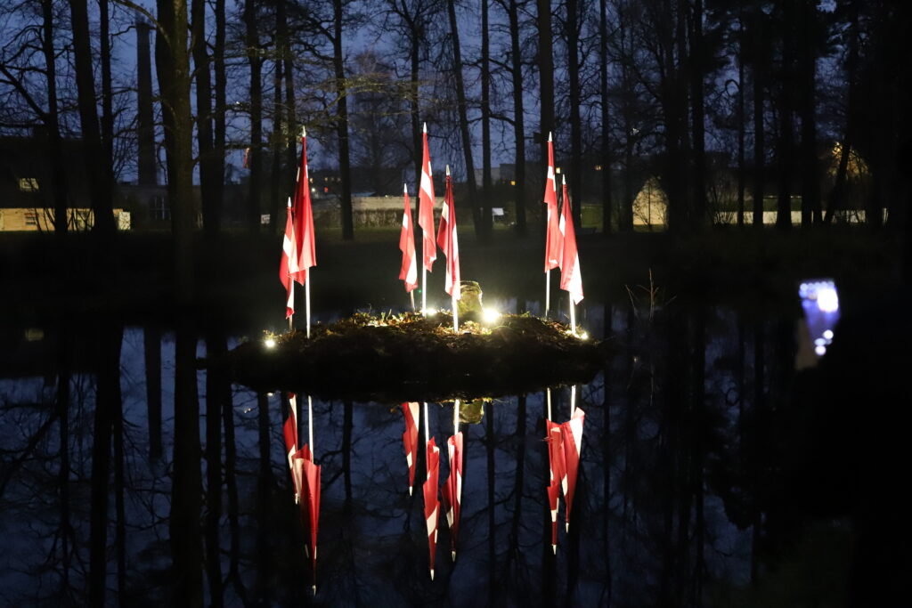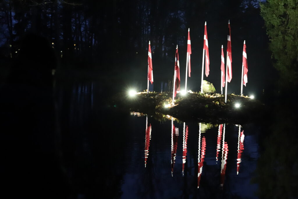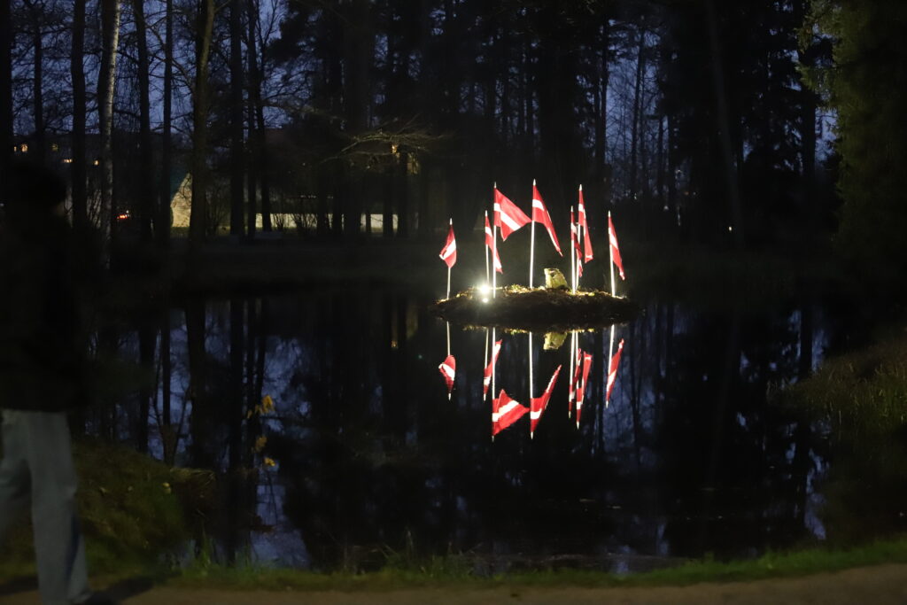 Gulbenieši pamanījuši Spārītes parkā izgaismotos karogus uz vienas no Svētezera saliņām un pauž par to atzinīgus vārdus arī “Dzirkstelei”.