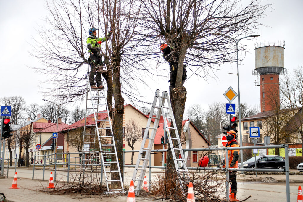 Daļai liepu vainags jau ir sakopts. Vēl darbi pie liepām gaida Pamatu ielā. Tas, cik laika nepieciešams vienas liepas sakopšanai, atkarīgs no paša koka.
