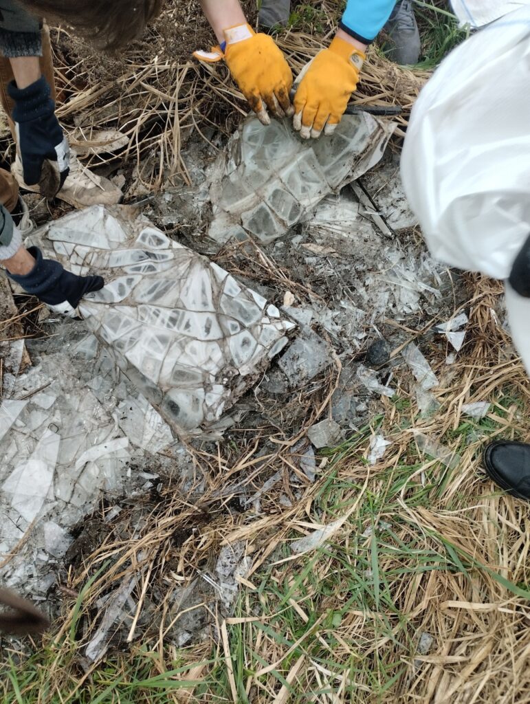 Kalnienā talcinieki veica kādu īpašu darbu – autobusa pieturas jumta nomaiņu. I.Lapse stāsta, ka kopumā talkā iesaistījās 25 talkotāji. Sakopta tika gan parka teritorija, gan arī atjaunots pieturvietas “Kalniena” jumts.